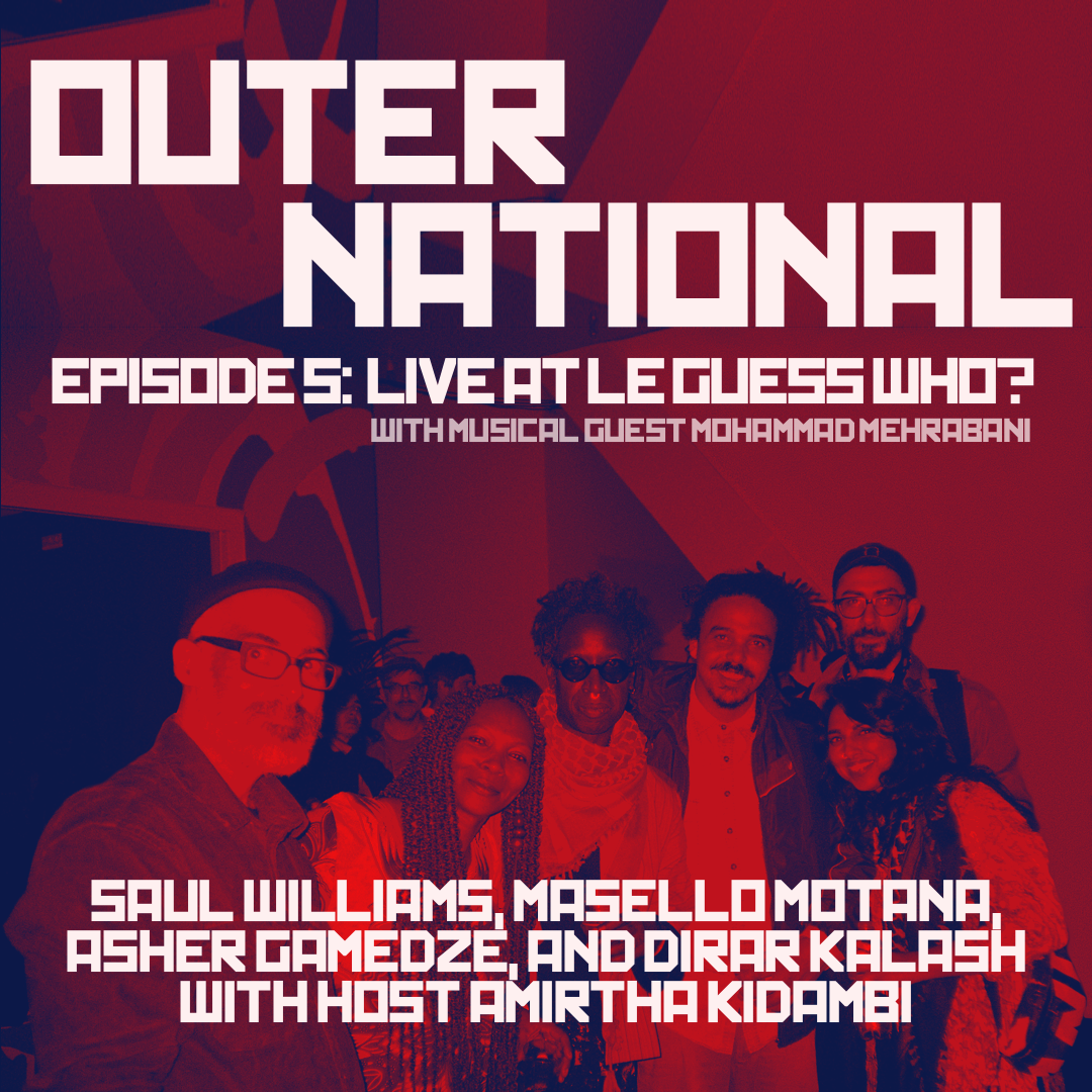 This was the premise of the Outernational podcast, and January’s special Live Edition is proof of concept. Featuring legendary poet/musician Saul Williams, Sonic Liberation Front founder, Dirar Kalash from Palestine and South African musicians Masello Motana and Asher Gamedze, we had a kaleidoscopic conversation across borders, histories and struggles, using Le Guess Who? festival as a community gathering. As Saul said during his set earlier that evening, every concert is a meeting. Music transcends borders and musicians know how to organize.